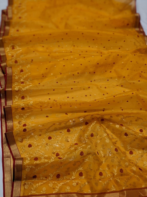 Kesari Yellow Kinar Border Zaal Chanderi Handloom Saree