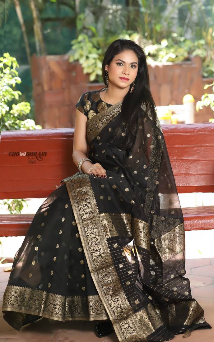 Black & Maroon Kinar Border Zaal Chanderi Handloom Saree